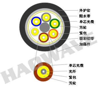 ·防水尾纜采用一根或多根單芯光纜,SZ絞合纜芯,精確控制余長(zhǎng),縱包鋁塑復(fù)合帶,外擠PE護(hù)套而成
