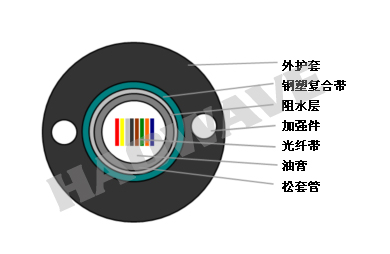 •截面阻水結(jié)構(gòu),確保良好的阻水防潮性能鋼帶粘接護套及金屬平行加強,抗壓力,張力性能優(yōu)良光纖集裝密度高,接頭省時,適用于接入網(wǎng)。